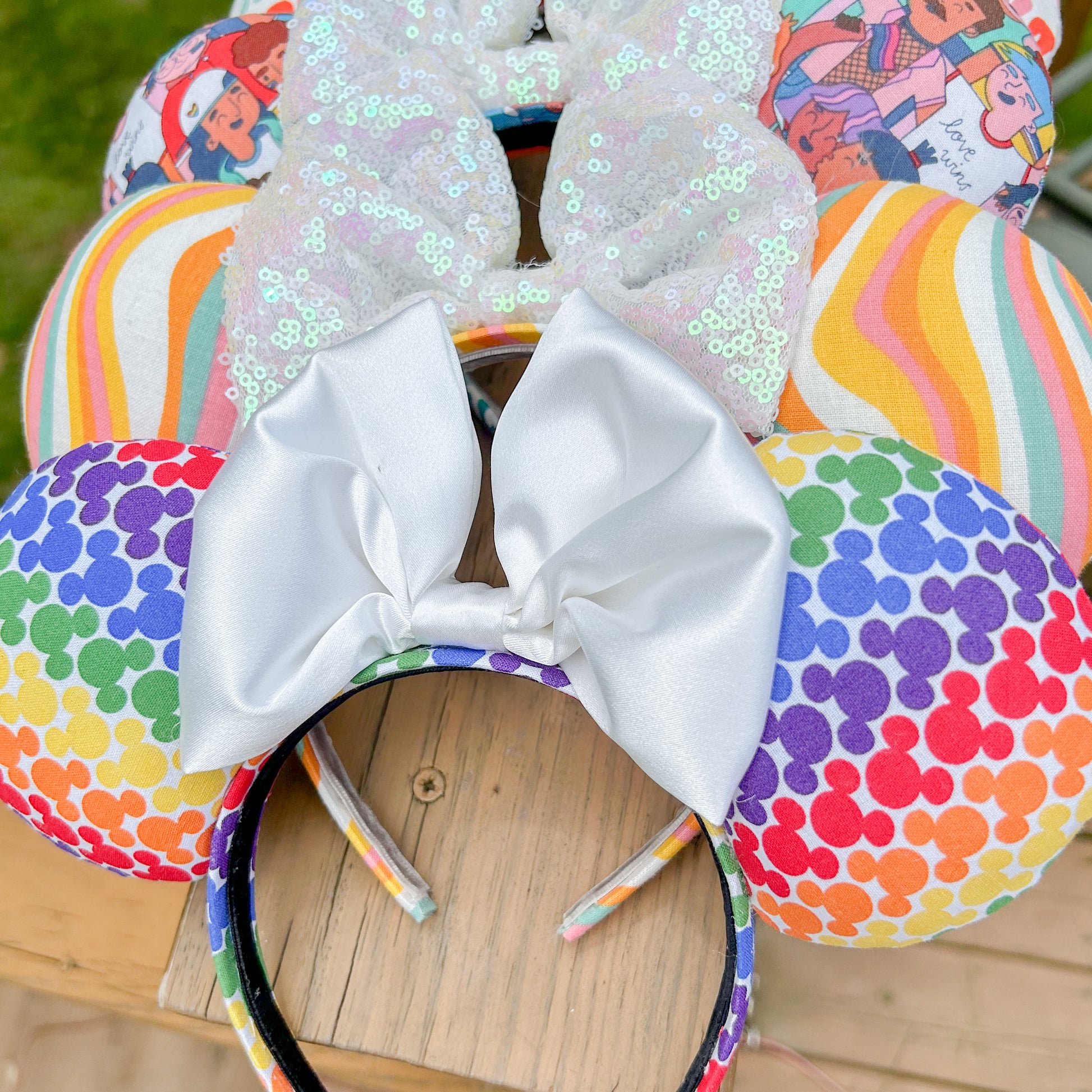 Top off your look with these fun and fabulous Rainbow Pride Mouse Ears! Handmade and oh-so-colorful. Let your personality burst forward with our adorable, handmade mouse ears! Each pair of our Rainbow Stripe Pattern Handmade Mouse Ears is carefully handcrafted by skilled artisans, ensuring exceptional quality and uniqueness.
